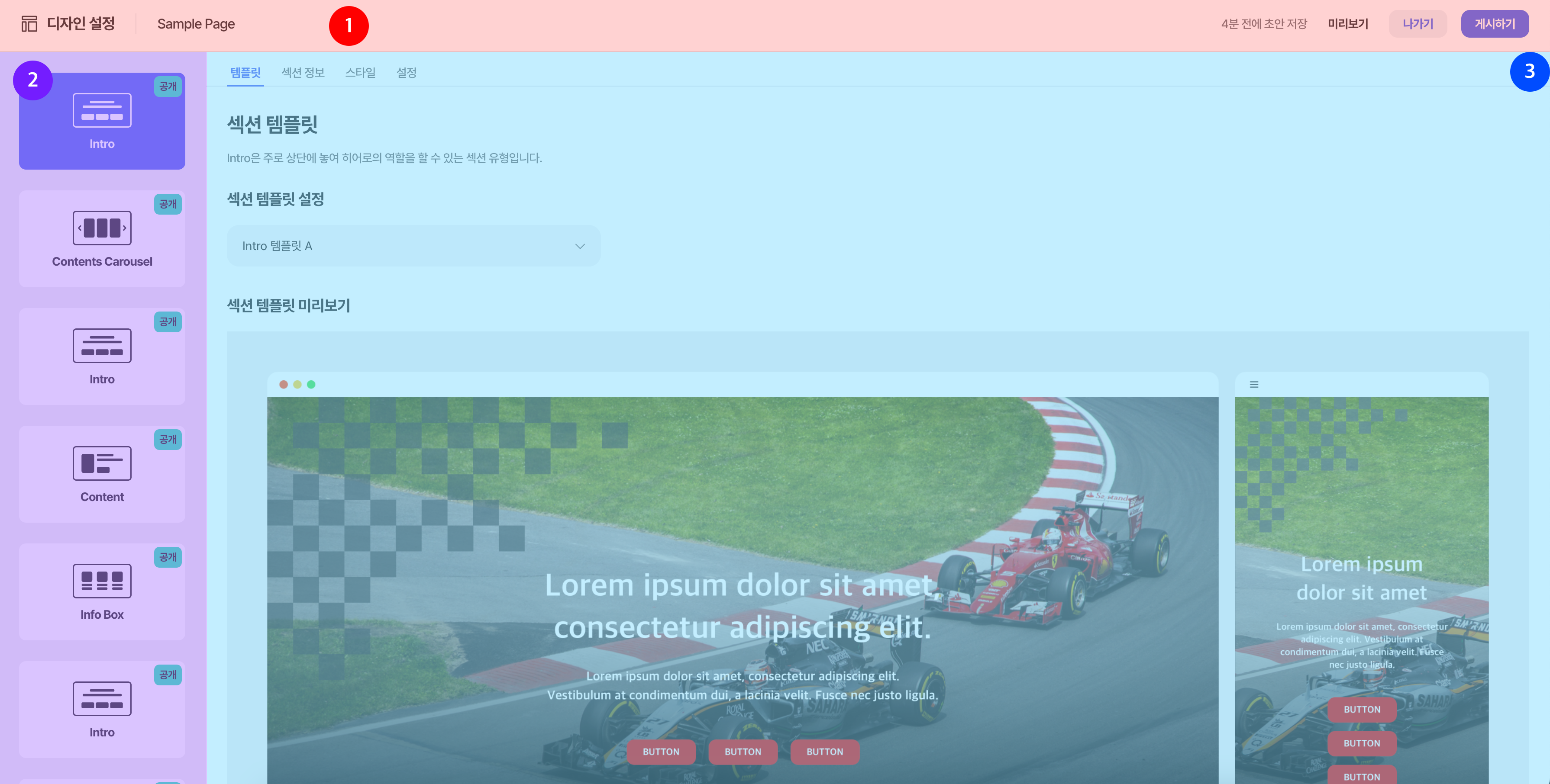 섹션 디자인 수정을 할 수 있다.