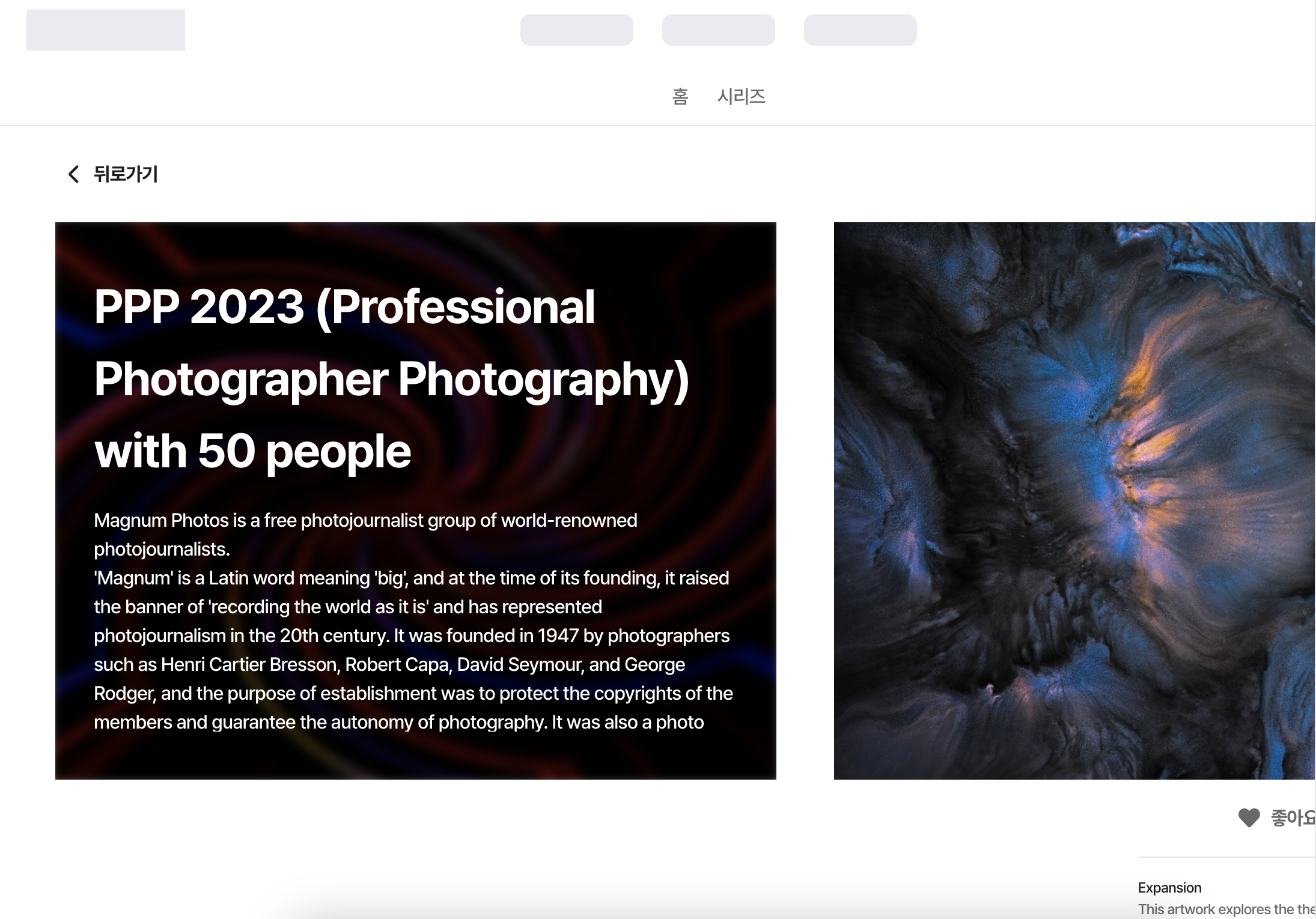 시리즈 상세와 시리즈에 포함된 포스트 이미지를 감상하는데에 초점이 맞춰진 템플릿 입니다.